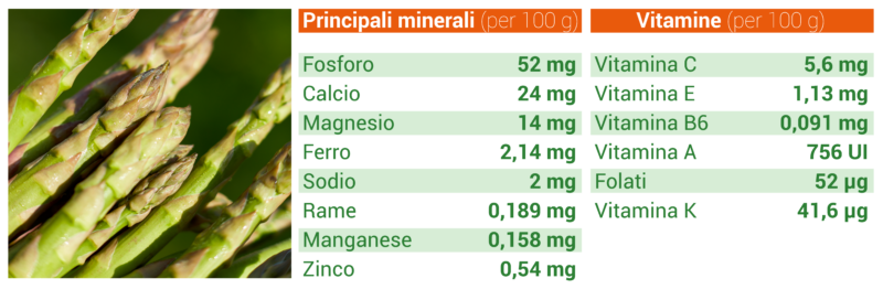 Gli asparagi sono ortaggi leggeri e nutrienti, ricchi di minerali e vitamine e naturalmente poveri di calorie.
